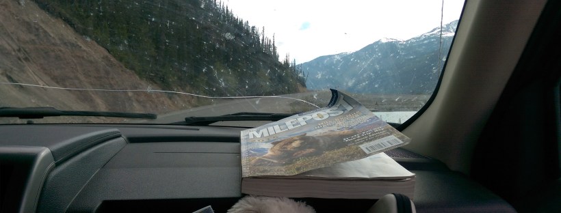 Goal #1: get out of the Yukon. We cheered when we passed a white sign that read “Super, Natural British Columbia Welcomes You!” (Our brains didn’t register the comma on the sign, though, so we read “Supernatural British Columbia Welcomes You!” So much cooler.) Leaving behind a territory and entering a province, rest stops and gas became even less frequent (didn’t think it was possible) but it was okay because we mastered reading the Milepost backwards and therefore were more confident (the Milepost is written south to north-opposite our direction of travel). And besides, Day 1 had been an excellent sensei.