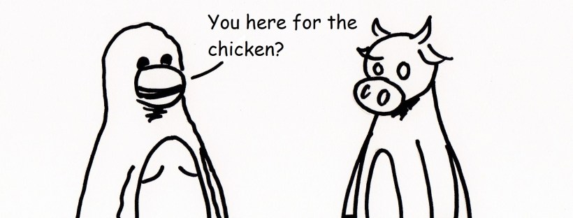Today is Cow Appreciation Day and if you wear a cow costume to Chick-fil-A, they’ll give you a free chicken sandwich. Which reminded me of a brief story: