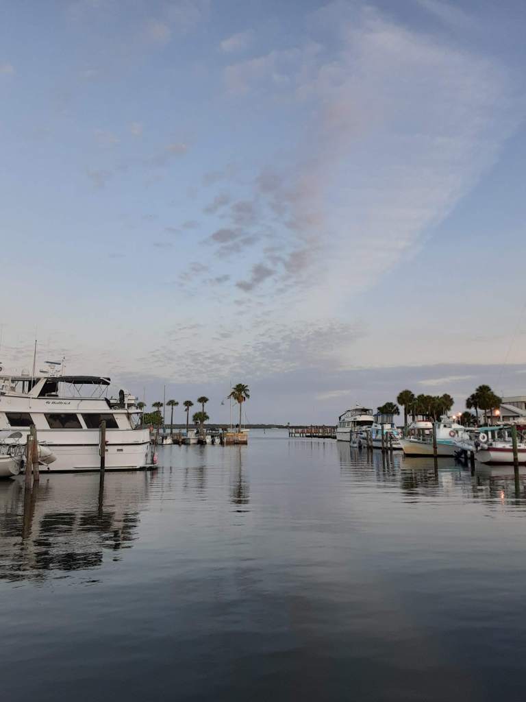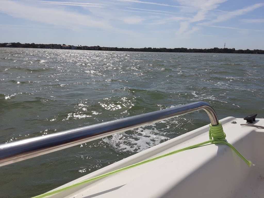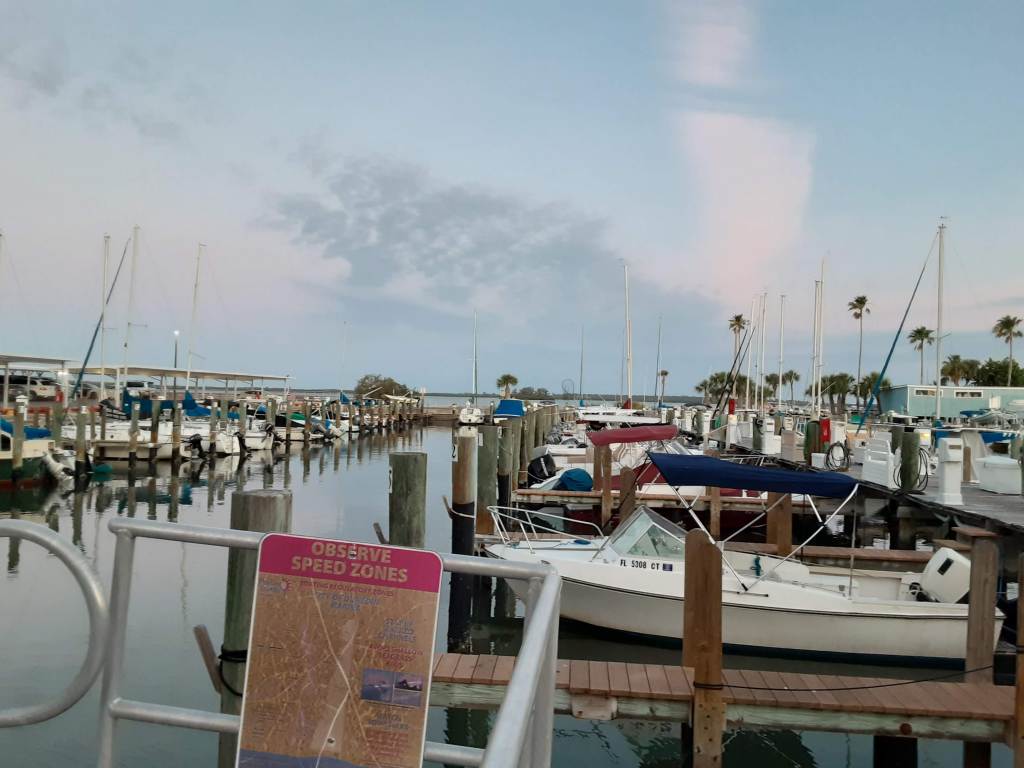 - The marina where we went first was Dunedin Marina (google “dunedin marina boat ramp” images and try not to shake your head and say “IDIOTS”, but you will; yeah, we’ll never go there again. Wretched place for newbies who suck at backing up trailers. And it’s ridiculously busy if you’re there any other time than first light)