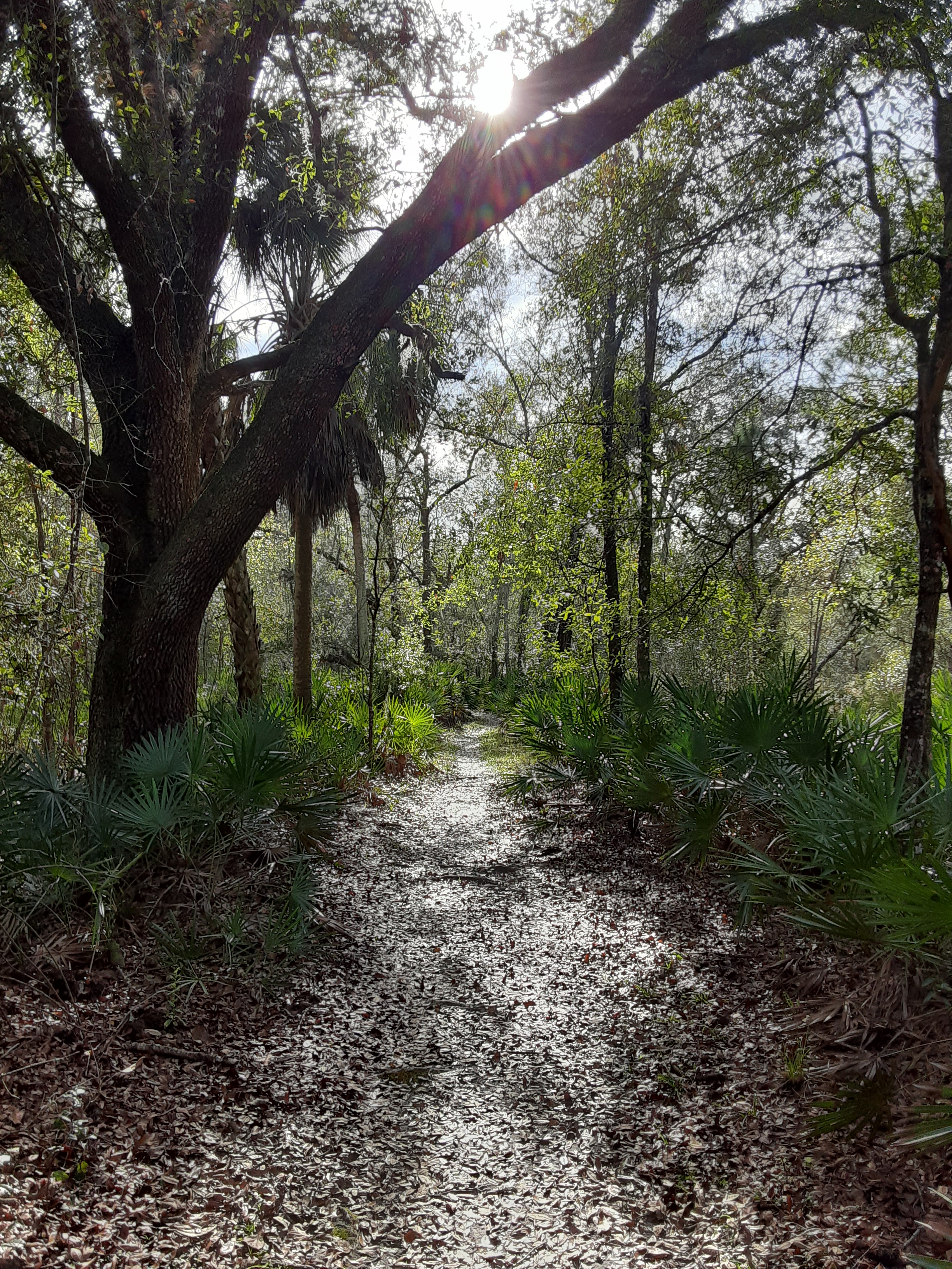 Last week I went for a 15-mile hike in Thonotosassa, FL, and, I’ve gotta say, the scenery looked kinda like it always does. Green with palms. Well, there was a bunch of leaf litter from oaks which were looking a little lean from dropping leaves but that was the only difference from the usual.