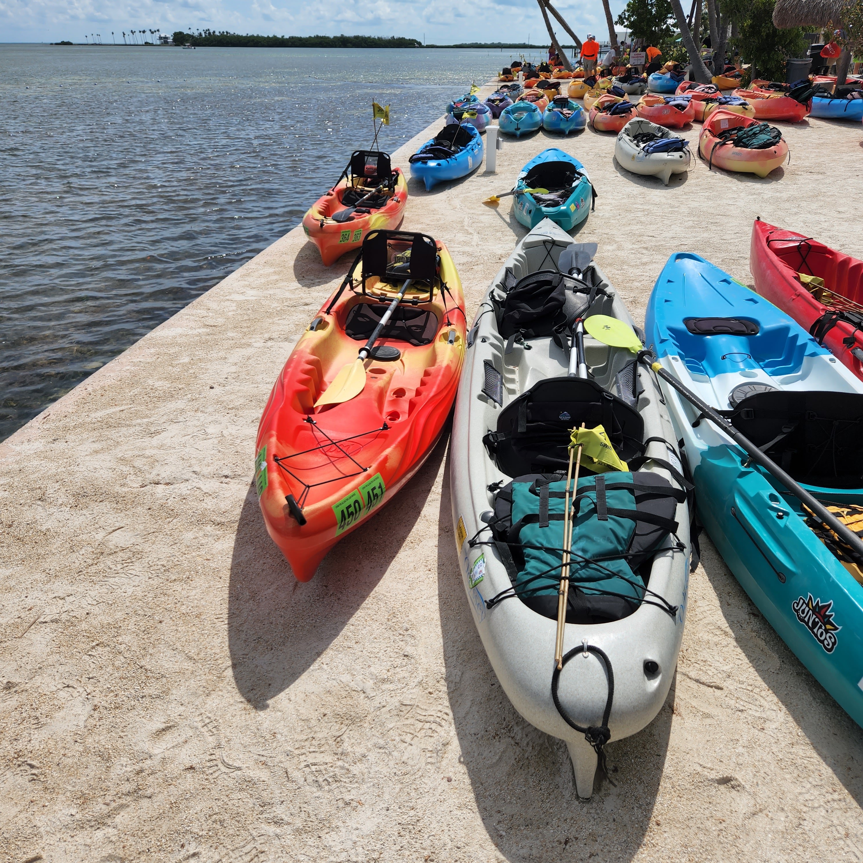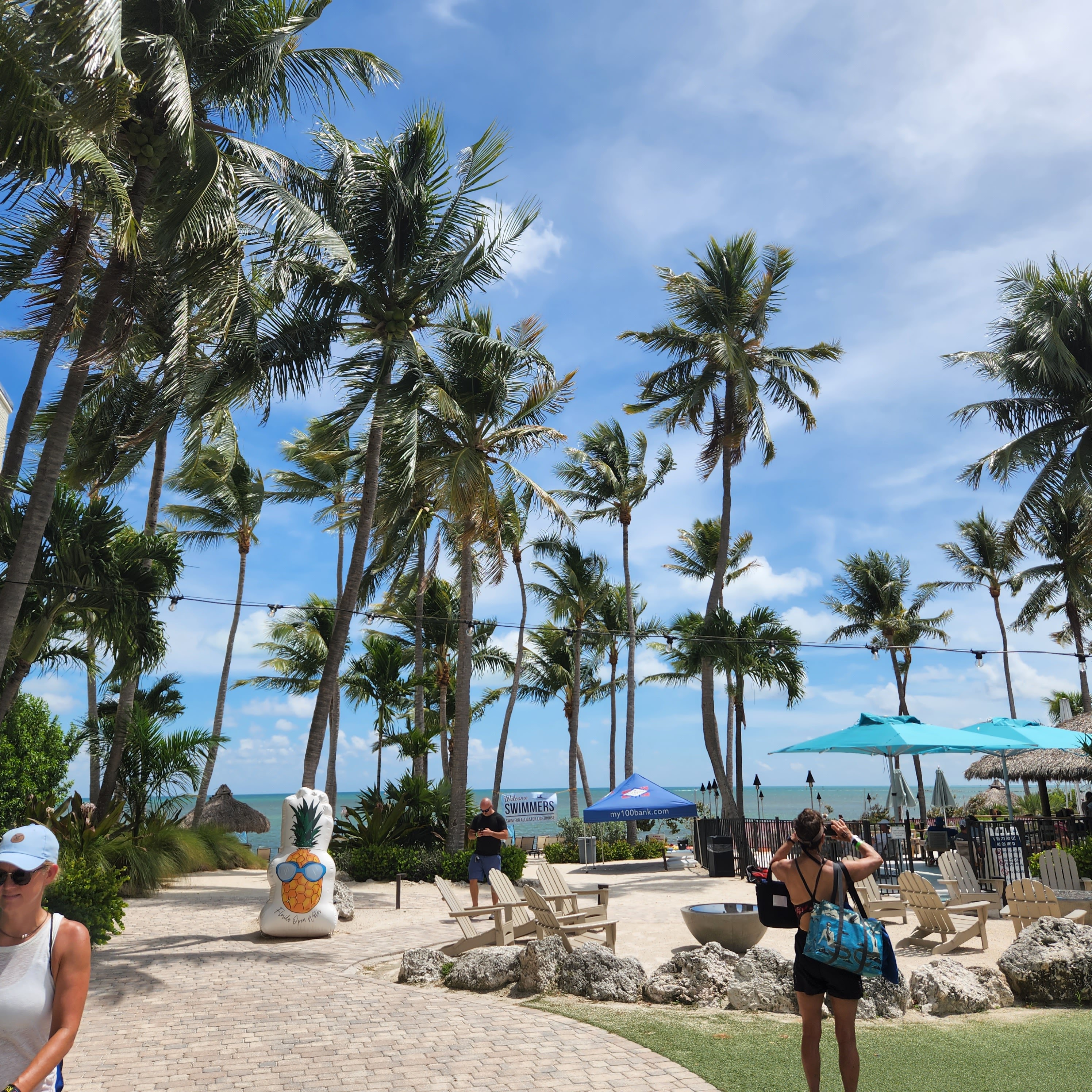Amara Cay Resort had clearly marked parking for non-guests across US-1 however that’s where the clear signage sort of ended. We walked around the parking lot first looking for more signs, discovered the kayak tent, then returned to the resort’s main entrance where we filed past a vendor selling event t-shirts and then out onto the resort patio where palm trees waved around an outdoor bar where hotel patrons were already mingling.